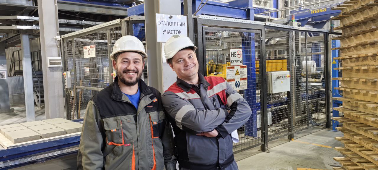 Два сотрудника завода тротуарной плиты “Поревит” (Выбор-КСМ) успешно прошли программу подготовки по стандартам Федерального центра компетенций. Это Александр Некрасов, начальник цеха, и Сергей Медведев, мастер-оператор бетонно-формовочной линии.