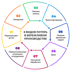 В том числе, мы уже рассказывали о 7 видах потерь. Напомним, что это: